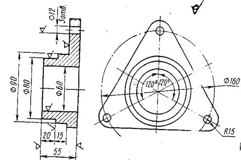 2. По эскизу детали (рис. 3) разработайте эскиз отливки с модельно- литейными указаниями, приведите эскизы модели, стержневого ящика и собранной литейной формы (в разрезе). Опишите последовательность изготовления формы методом ручной формовки и методом литья по выплавляемым моделям. Дайте сравнительную характеристику этих методам.