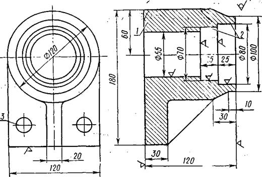 2. По эскизу детали (рис. 1) разработайте эскиз отливки с модельно-литейными указаниями, приведите эскизы модели, стержневого ящика и собранной литейной формы в разрезе. Опишите последовательность изготовления формы методом ручной формовки и методом литья в оболочковых формах. Дайте сравнительную характеристику этим методам.