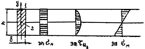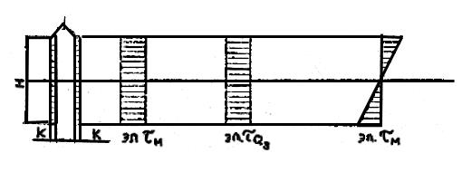 Эпюры напряжений от перечисленных нагрузок в расчетном сечении швов №2 будут иметь следующий вид: