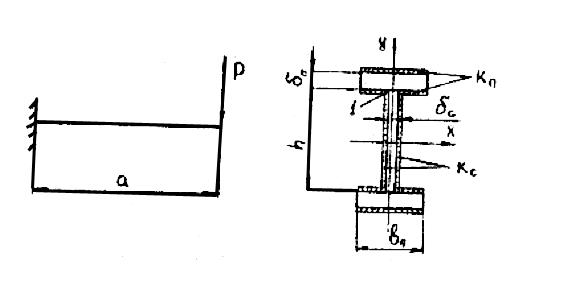 При решении этой задачи считаем, что нагрузка на консоль двутаврового сечения не известна. Величина этой нагрузки является предельно допустимой для основного металла двутавра с учетом схемы нагружения и допускаемых напряжений и .