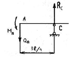 Определяем . В сечении С приложена сосредоточенная сила – реакция опоры С. Поэтому в сечении С так же, как и в сечении А, определяем два значения поперечной нагрузки: одно левее точки С, а другое правее. Разность между этими поперечными нагрузками должна быть равна реакции опоры: