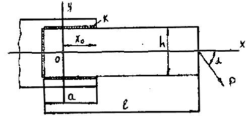 Определить величину предельной нагрузки , приложенной к кронштейну (см. рис.) под углом к его оси. Кронштейн к соединяемому элементу конструкции приварен внахлестку угловым швом по всему контуру присоединения. Материал кронштейна – сталь Ст. 3, сварка произведена вручную электродами обыкновенного качества, мм, мм, , мм, мм, МПа.