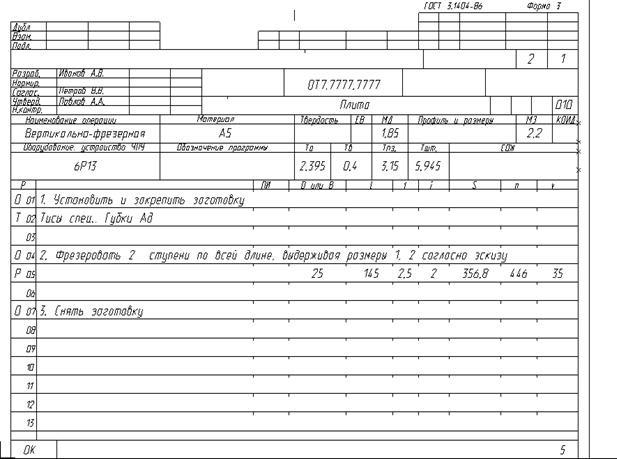 Операционная карта одной из операций показана на рис. 5.