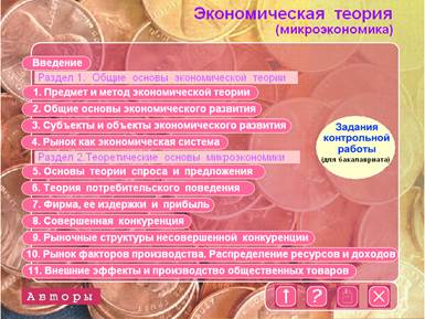 Контрольная работа выполняется с помощью экспериментальной Интернет-версии компьютерной обучающей программы (КОПР) по дисциплине «Экономическая теория (микроэкономика)», предоставляющей студентам целостную систему освоения учебного материала с использованием новых образовательных технологий.