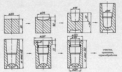горячей штамповкой выдавливанием из кольцевой заготовки, полученной из полого слитка диаметром 426 м и с толщиной стенки 60 мм;