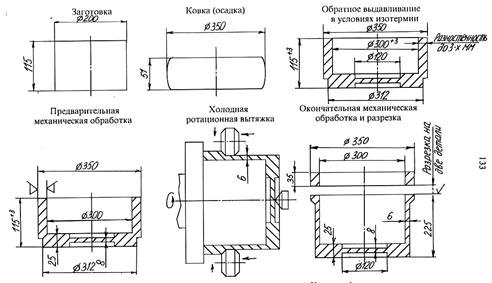 - совершенствование известных технологических процессов изотермической штамповки за счет включения в технологию прогрессивных способов деформирования методами поперечного и комбинированного выдавливания;