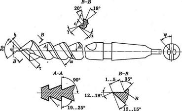 зависит ширина и толщина срезаемого слоя, условия теплоотвода, прочность режущей части сверла.