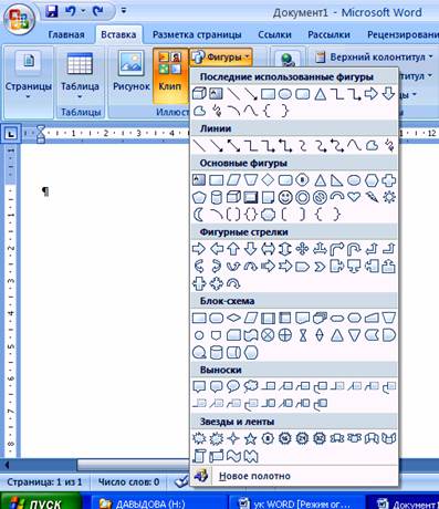 В редакторе имеется несколько режимов работы. Режимы можно выбрать либо с помощью вкладки Режимы просмотра документа либо кнопок, находящихся под горизонтальной линейкой прокрутки.