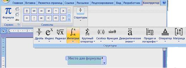 4. появляется вкладка Работа с колонтитулами. Конструктор