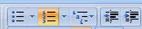 4. Регулирование уровня списка производится с помощью клавиш ТАВ (увеличить отступ) и SHIFT + ТАВ (уменьшить отступ) или с помощью пиктограмм (закладка Главная,