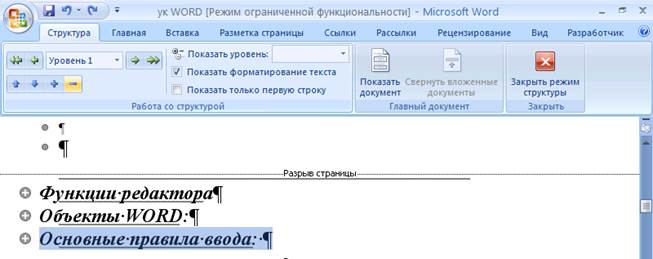 4. режим Структура позволяет сворачивать и разворачивать заголовки