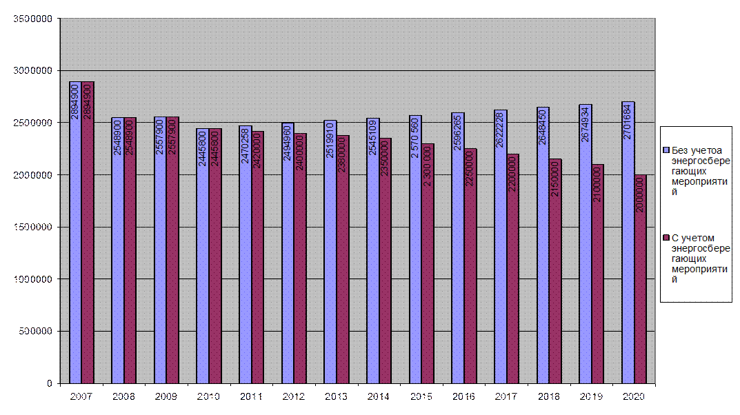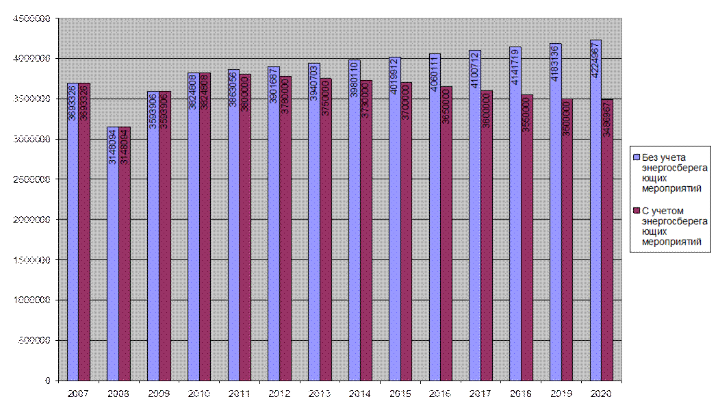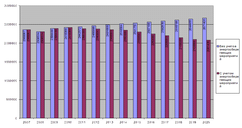 Приложение № 3. № 4. Структура и прогноз потребления энергетических ресурсов на территории Обоянского района Курской области к 2020 году без учета энергосберегающих мероприятий