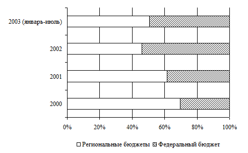 В 2002 г. в связи с общей тенденцией к централизации бюджетных расходов на поддержку АПК, а также в связи с передачей на федеральных уровень части бюджетных расходов, в частности, содержания бюджетных организаций АПК произошло некоторое увеличение расходов на аграрный сектор в пользу федерального бюджета.