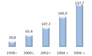Развитие новых технологий обеспечивает опережающий рост рынков инновационных наукоемких продуктов по сравнению с мировой экономикой и мировой торговлей в целом (около 10-20% против 4-8% в год).