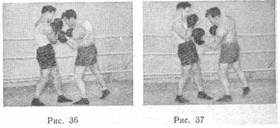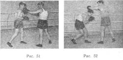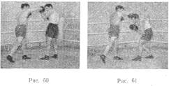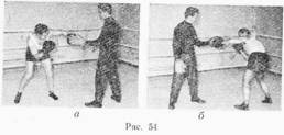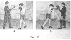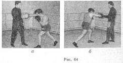 Большое место в занятиях с юношами должен занимать показ. Показывать каждый новый прием следует не меньше 3—4 раз, причем каждый — в разных позициях, так, чтобы ученики видели движение и спереди, и сбоку, и сзади. Показ нужно сопровождать краткими объяснениями, в которых обращается внимание юношей на основное, главное. Например, объясняя удар снизу левой, следует обратить внимание на рывок левым бедром, на правильное движение кулака, локтя, на положение правой руки.