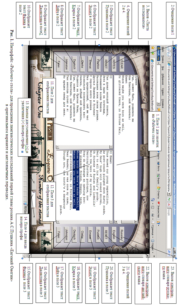 Для проведения исследования использовался оригинал текста А.С. Пушкина «Евгений Онегин» [7] и переводы англоязычных авторов, которые мне удалось найти в книжных магазинах Москвы. Среди них были четыре стихотворных перевода: Оливии Эммет и Светланы Макуренковой (1999 г.) [6], Бабетт Дэйч (1936 г.) [11], Чарльза Джонстона (1977 г.) [12], Джеймса Фэлена (1995 г.) [13] и один прозаический – Роджера Кларка (2005 г) [14].