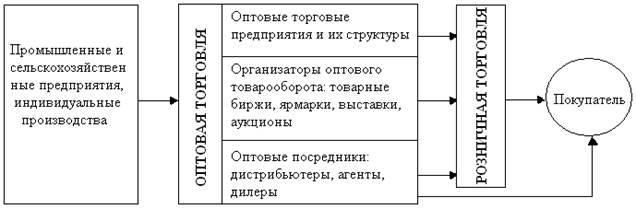 Оптовые предприятия, преобразуя производственный ассортимент продукции в торговый, определяя структуру и направление товарных потоков и выступая в качестве посредника между производителями и розничным торговым звеном, способствуют гармонизации потребительского рынка. Товарные потоки и каналы распределения зависят не только от назначения продукции и категории потребителей, но и от требований времени. По мере изменения рыночной конъюнктуры и экономических факторов рынка каналы распределения оптовой торговли также претерпевают соответствующие изменения. В связи с этим уместно привести формулировку, приведенную в работе В. Даненбурга, США: «Оптовая торговля - это катализатор происходящих изменений в производстве и потреблении в условиях постоянно меняющихся потребностей рынка».[1]