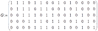 Кодирование производится умножением информационного слова (вектора) на порождающую матрицу. Порождающая матрица создается методом BuildGeneratorMatrix