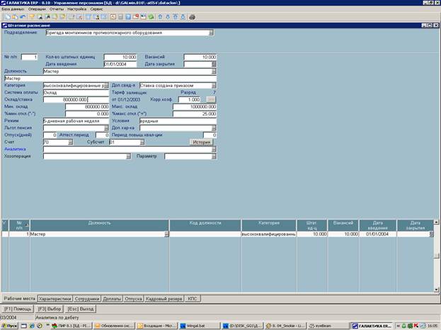 • Штатного расписания (в системе хранится история изменений штатного расписания, возможно получение информации об изменениях ШР за указанный период);