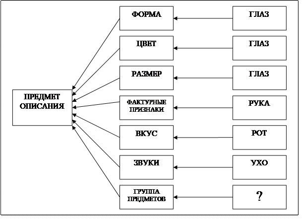 После прочтения детям предлагается из ряда предметных картинок. Представленных на панно, отобрать только те, о которых рассказывается в тексте. После этого логопед предлагает им расположить картинки в последовательности рассказа. Затруднения в планировании материала являются хорошим поводом для представления графического плана. Показывая схему, логопед объясняет, что она поможет быстро найти место каждой картинки и предлагает вспомнить, о каких предметах говорилось в начале. Дети находят соответствующие картинки и подставляют их в первую строчку схемы. Анализ протекает в следующем порядке: