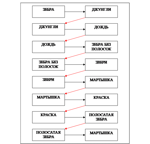 Закрепляя найденное правило, предлагается детям соединить стрелками красного цвета одинаковые картинки (или слова) двух соседних предложений, устанавливая тем самым цепь смысловых связей через единство предметных значений.
