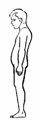 Правильная осанка хорошо сложенного человека характеризуется собранностью, подтянутостью, при этом голова держится прямо, плечи развернуты, живот подобран, ноги разогнуты в тазобедренных и коленных суставах, пятки вместе. Профиль позвоночника образует волнообразную линию с равномерными возвышениями и углублениями одинаковой высоты.