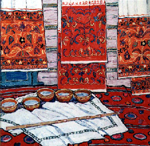Поразительно проникновенны ее картины, где в интерьере деревенской избы изображен ребенок. Картины "Сон", "Маленький батыр" были написаны сердцем, воскрешая в памяти те далекие дни когда ее сын был таким трогательным малышом. Все ее полотна необыкновенно мелодичны.