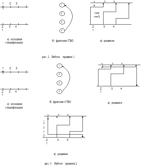 Работа правила проиллюстрирована на рис. 2. Правило эф-фективно, т.к. для разрешения конфликта n -соединений требует ( п-1 ) магистралей. Однако, такие ситуации сравнительно редко возникают на практике.