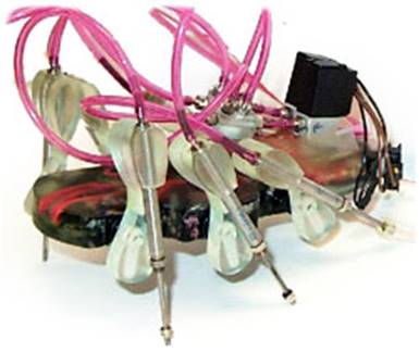 В новой печатной схеме, созданной в исследовательском центре Xerox (Пало Альто), отсутствуют подвижные части (она состоит из 144 наборов по 4 сопла в каждом)