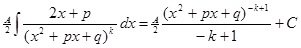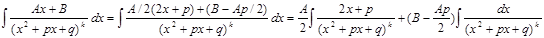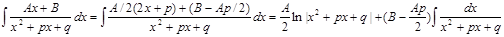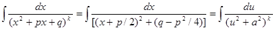 Второй интеграл сводится к нахождению интеграла: где u=x+p/2, a= , q-p2