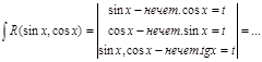 4 R(sinx, cosx) – нечетная функция относительно sinx и cosx, то tgx=t.