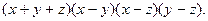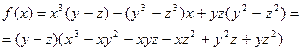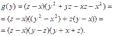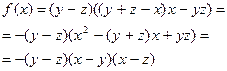 Для разложения на множители второго множителя используем тот же приём, но в качестве переменной рассмотрим , поскольку эта переменная входит в меньшей степени, чем . Обозначая его через и считая и постоянными, будем иметь:
