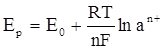 Равновесный потенциал определяется следующим уравнением: