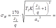 Принимаем предварительно коэффициент диаметра червяка q=12,5 и коэффициент нагрузки К=1,2