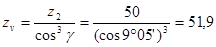делительный угол подъема γ при Z1=2 и q=12,5 угол γ=9°05’