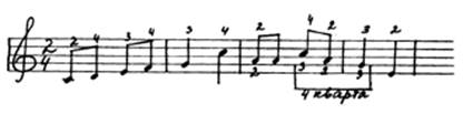 Мелодия движется поступенно и, казалось бы, аппликатура должна соответствовать гаммаобразному принципу. Однако, если посмотреть при этом на пальцы, то нетрудно убедится, что 4-й палец с ноты ре