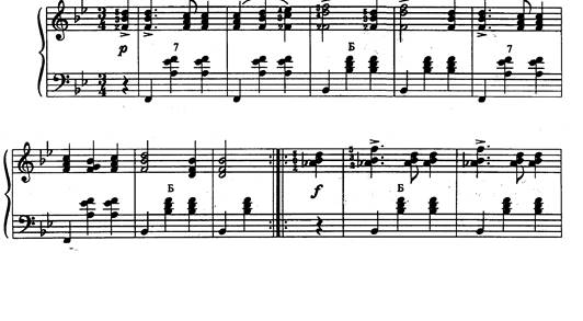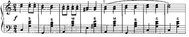 Большей частью аккорды играются коротко, легко, особенно в пьесах подвижного темпа: