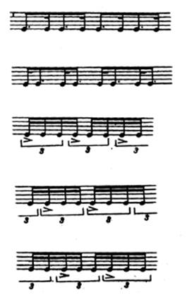 будут двигаться заметно скорее, чем остальные (причиной этого является скрытый интервал терции, появляющейся через один звук). Подобные ускорения вызывают суетливые движения пальцев и приводят к неритмичности.