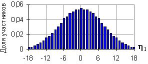Простота олимпиады заключается еще и в небольшом разбросе ее участников по уровням подготовки (все они в большинстве своем хорошо успевающие школьники). Это создает условия для использования линейных приближений, что значительно упрощает математическое описание. Моделирование итогов олимпиады облегчается тем, что распределение участников по способностям известно априори. В силу многоэтапного характера олимпиады оно соответствует распределению отобранного ансамбля, в котором основную массу испытуемых составляют именно «способные» учащиеся, поскольку малая доля «истинно талантливых» школьников определяется чисто объективными причинами, а незначительное представительство в ансамбле «откровенно слабых» учащихся - их отсевом на предыдущих этапах.