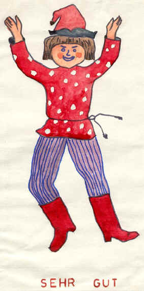 (Учитель хвалит детей – Хампельман улыбается – (sehr gut)).