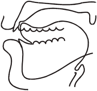 задняя часть спинки языка вместе с корнем продвинута вперед.