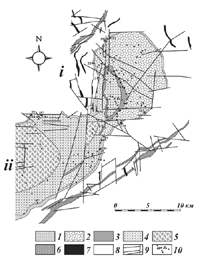 С и состава родоначального расплава по петрогенным, второстепенным и редкоземельным элементам. Установлена близость химизма родоначального расплава интрузива вулканитам свиты Ветреного пояса, что является дополнительным аргументом в пользу гипотезы об их комагматичности.