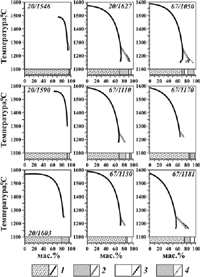 С), которые отражают начальные условия формирования генетически родственных пород [2]. При этом среднее значение для температурного интервала пересечений линий эволюции состава жидкости рассматривается как наиболее вероятная температура исходной расплавно-кристаллической смеси, а "равновесный" состав минералов принимается в качестве первичного (исходного). Состав жидкости, находящейся в равновесии с первичными кристаллами, определяет исходный расплав - в том смысле, что он соответствует состоянию смеси до того, как в ней пройдут процессы докристаллизации и (возможно) перекристаллизации.