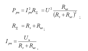 Расчет мощности, выделяемой на сопротивлении изоляции, выполнен по следующим формулам: