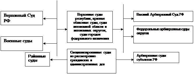 Судебную систему Российской Федерации составляют: федеральные суды, конституционные (уставные) суды субъектов Российской Федерации, мировые судьи субъектов Российской Федерации. (См. схему 1)