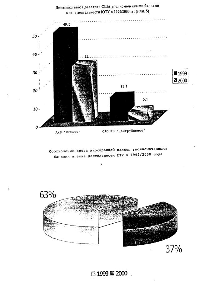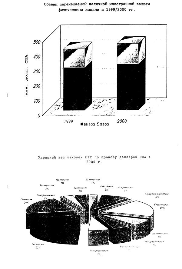 Сравнительные показатели перемещения иностранной валюты структурными подразделениями Таганрогской таможни за 2000 год.
