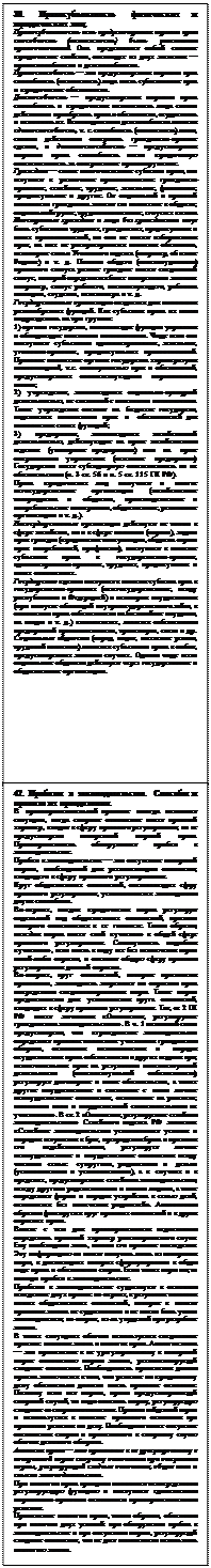 правового регулирования звучит иначе: запрещено все, кроме прямо разрешенного. Сказанное означает, что участник правовых отношений подобного типа может совершить только действия, которые прямо разрешены законом, а все остальные действия запрещены. Этот тип правового регулирования принято называть разрешительным. Он присущ тем отраслям права, которые связаны, например, с государственным управлением (административное право). Здесь в законе указывается точный, строго ограниченный объем правомочий; все, что выходит за пределы компетенции властвующего субъекта, категорически запрещено.