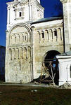 Укрепленная загородная резиденция великого князя выдерживала сравнение даже с лучшими образцами дворцового строительства романского Запада. В отделке храмов кроме барельефной резьбы необычайно широкое применение получил своеобразный прием оковки порталов и барабанов куполов золоченой медью. Впечатление золотых листов производили блестевшие медные плиты пола боголюбовского собора, в состав которого была введена и круглая скульптура.