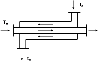 В данном случае рассматривается процесс теплообмена между двумя жидкостями, протекающие в концентрически расположенных трубках, когда нагреваемой является жидкость во внешней трубке.