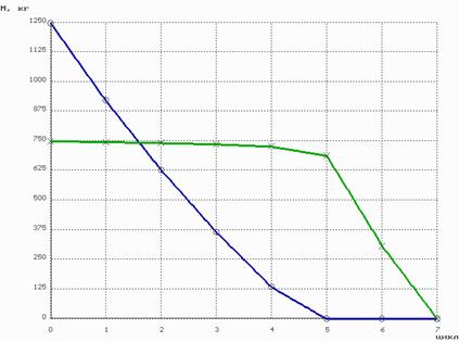Расчет по программе, реализующей приведенную выше методику, дает следующую зависимость массы летучих в аппарате от количества циклов нагрев – сброс давления: